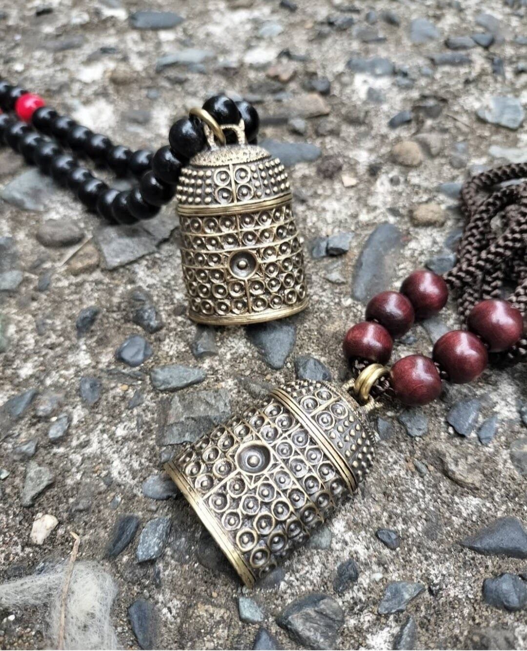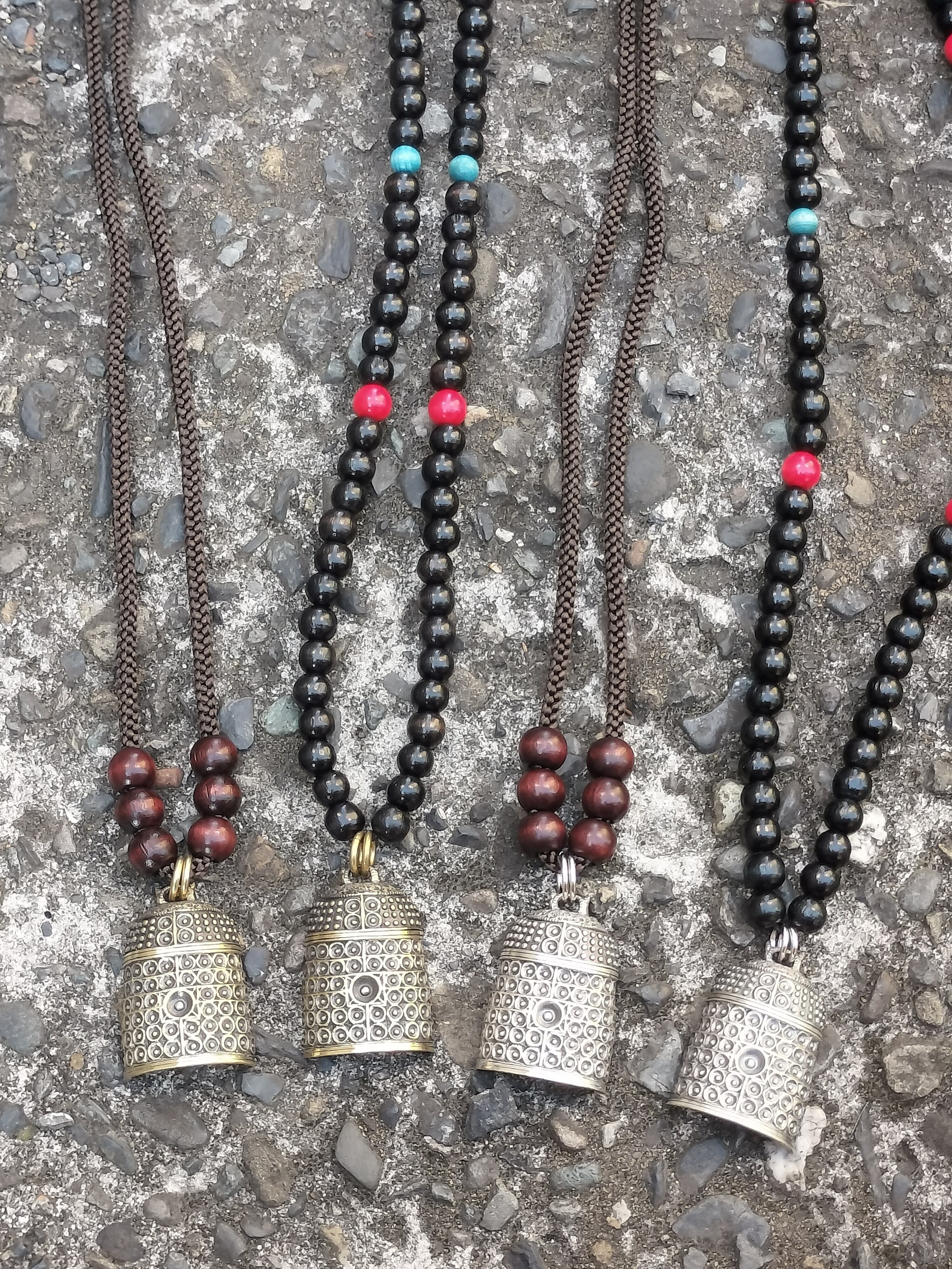 こちらはシルバー925を素材とし、ネックレス部はチェコ製ウッドビース茶と組紐を使い、GRYPHONがビーズの仕入れから組み上げまで独自に行ったものです。