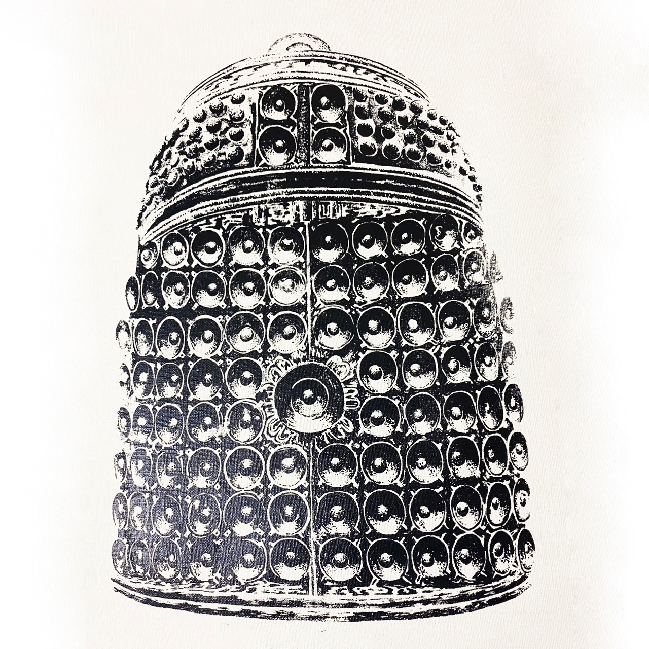 寺の梵鐘にスピーカーの造形が整然と埋め込まれたこの絵に「轟音の寺」という作品名が浮かび、創作意欲のままに造形しました。