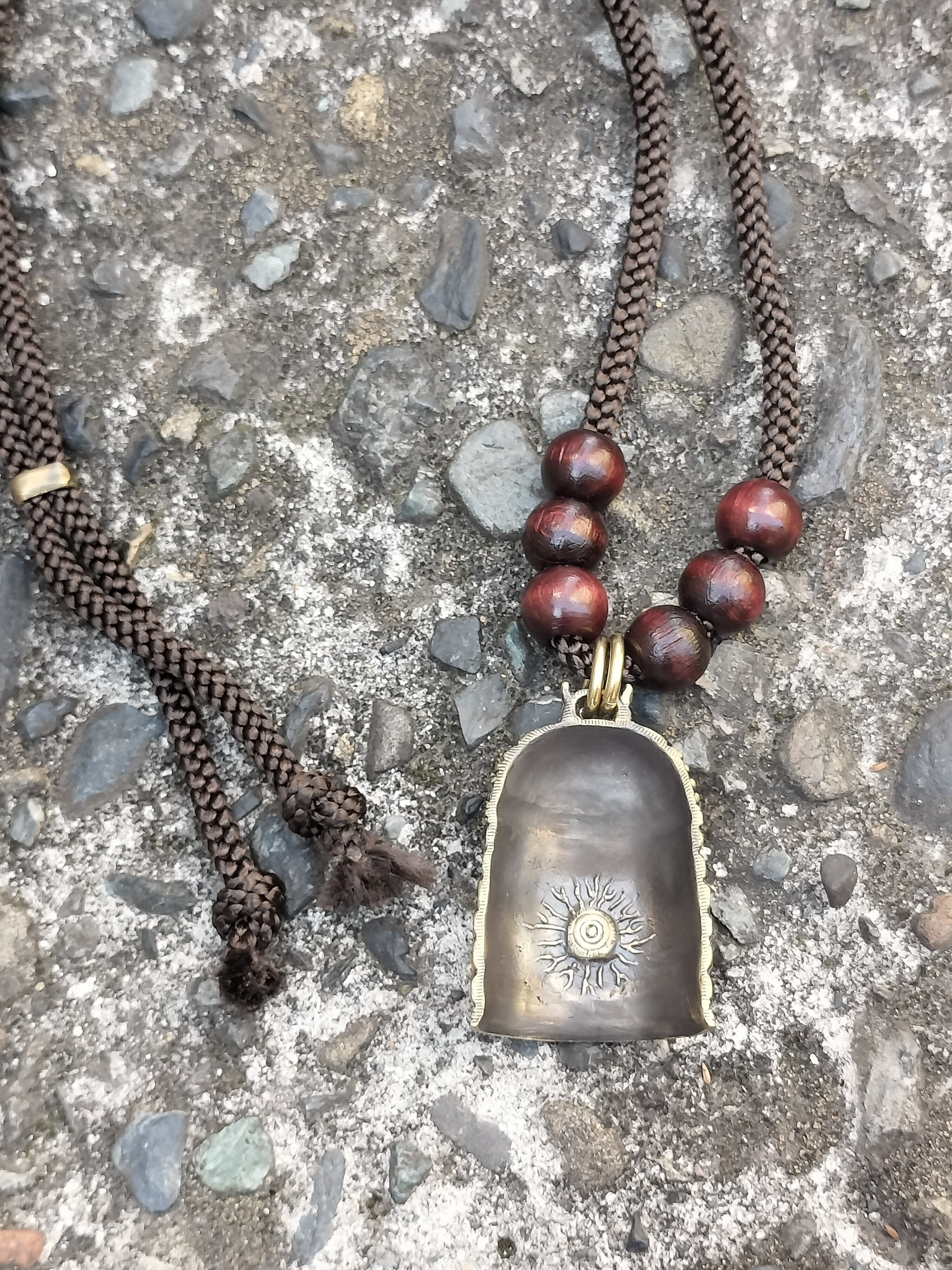 轟音の寺 Roaring Temple necklace brass with rope by GRYPHON