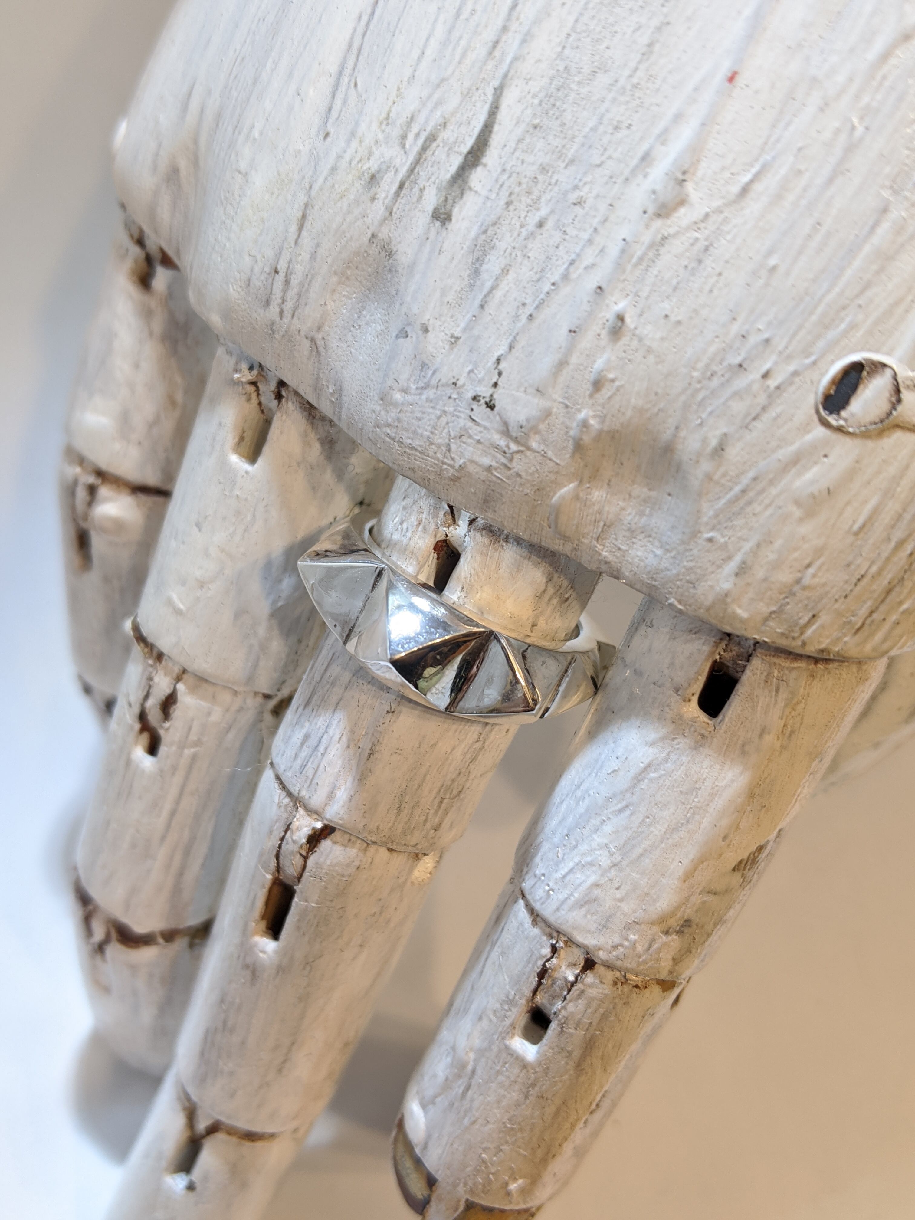 その硬と軟の対比と、磨き上げたシルバーの光沢が美しく調和したリングです。