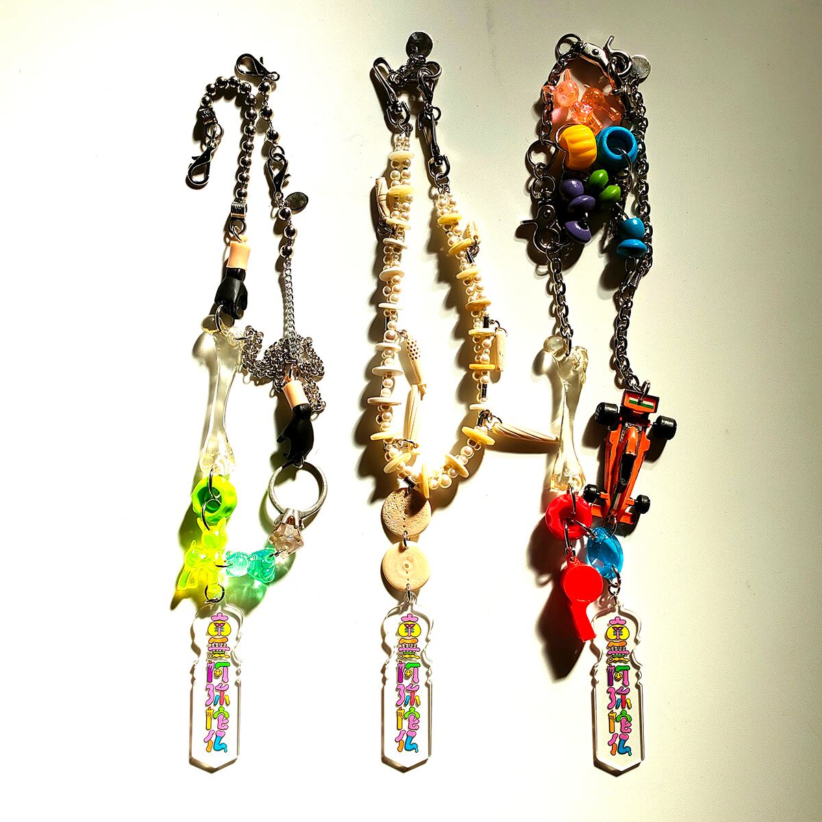 高価な貴金属や貴石を使用しないコスチュームジュエリーとはいえ、3本すべてかなり抑えたプライスにしたのは、我々がまだ未熟な作家であるということもありますが、