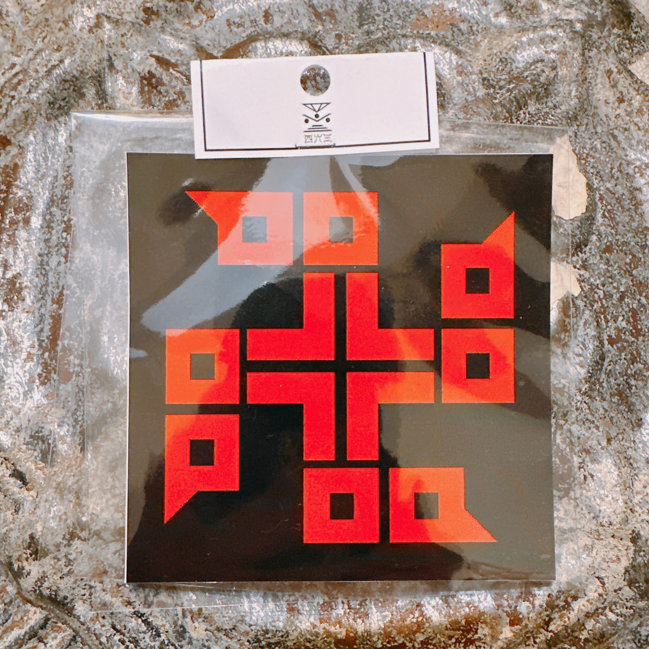 【呪】の文字を四つ巴にして卍を表現したステッカーです。